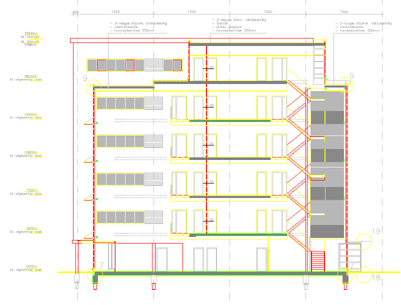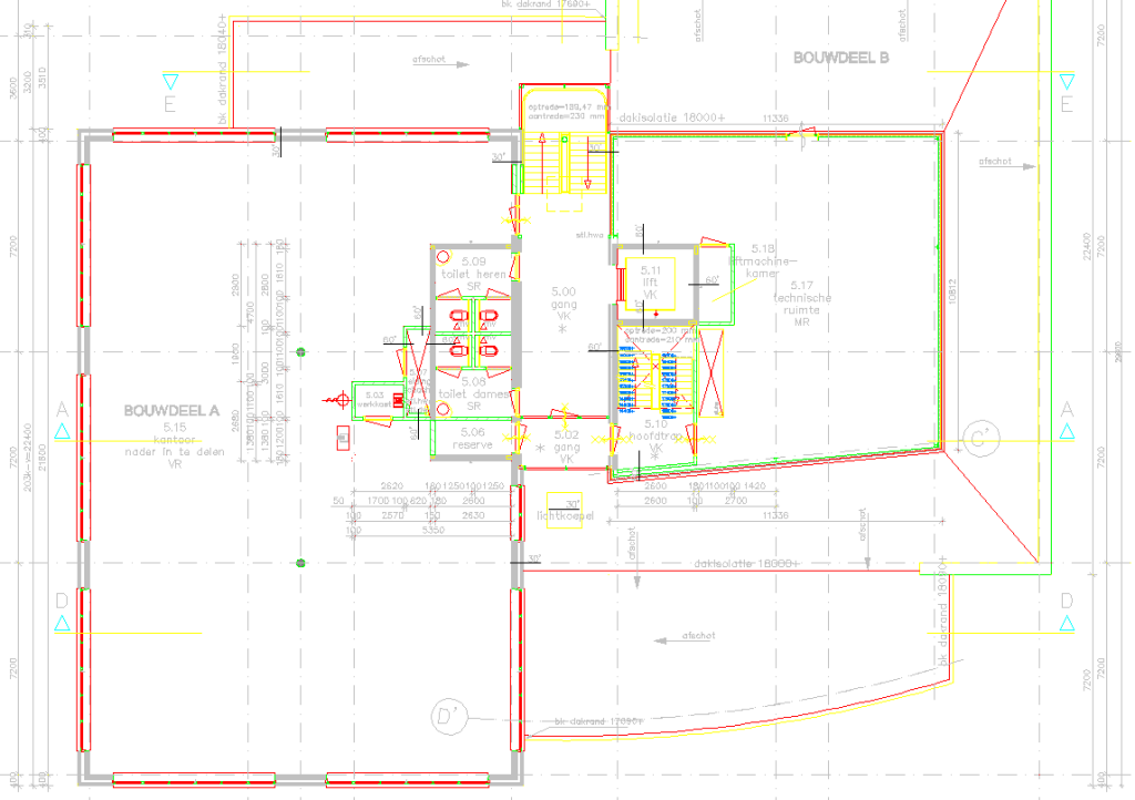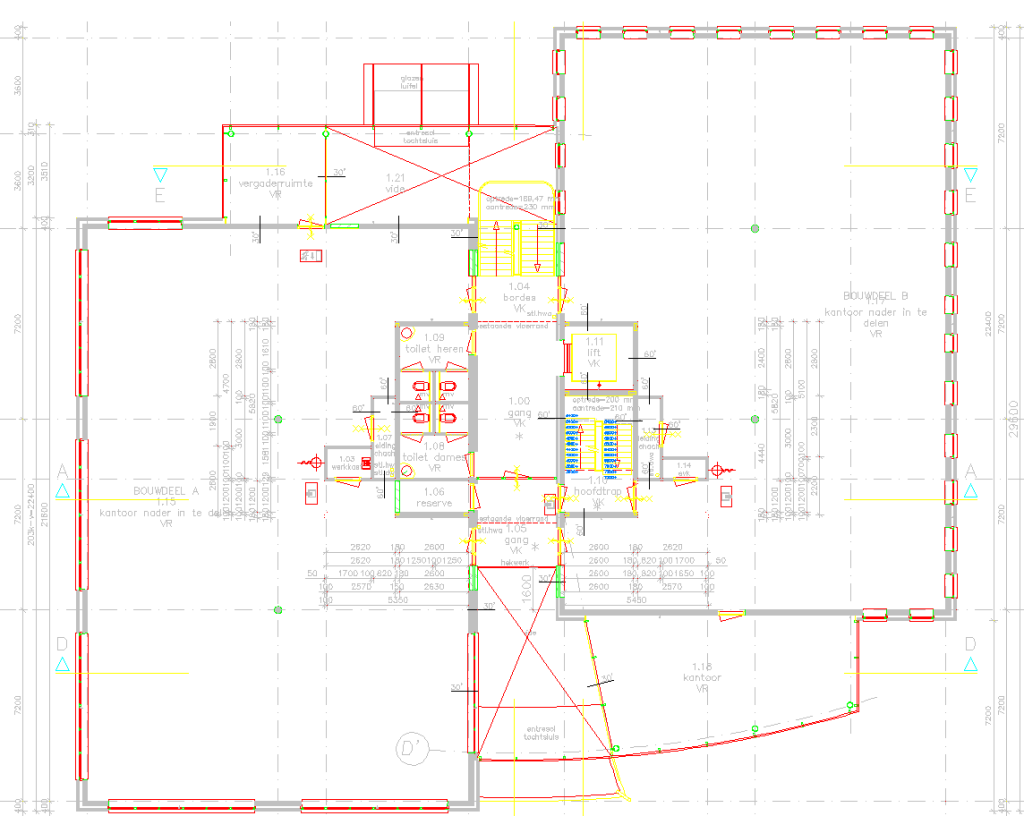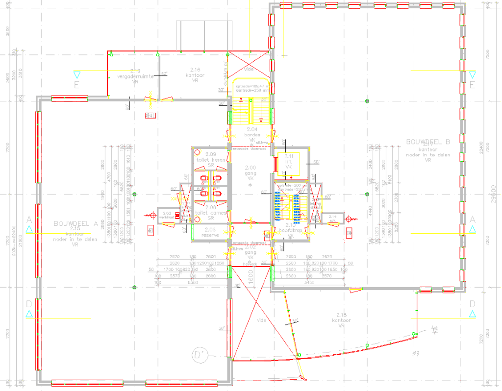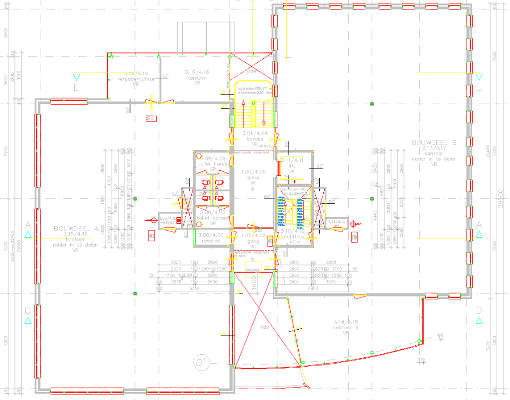 – Sanitaire ruimten per verdieping.